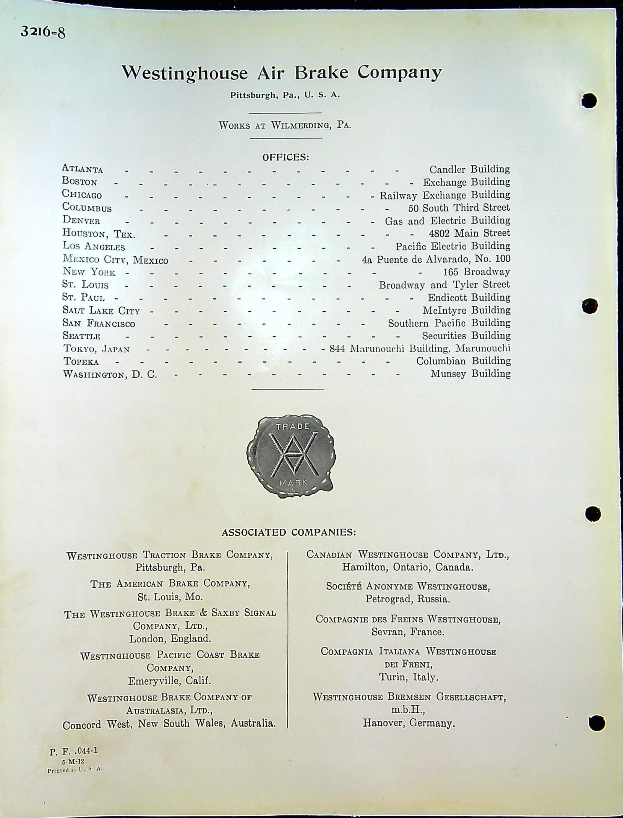 Westinghouse Air Brake Catalogs Air Compressor Components